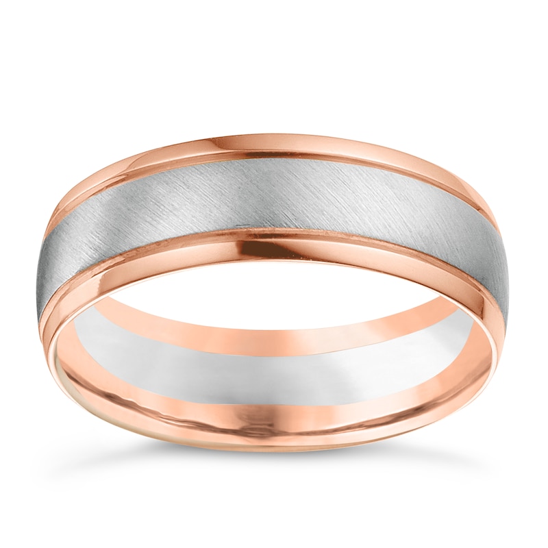 18ct White & Rose Gold Men's Wedding Band | Ernest Jones
