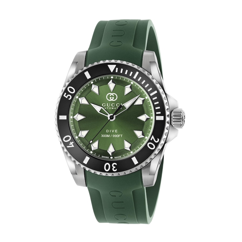 Gucci Dive 40mm Green Rubber Strap Watch | Ernest Jones
